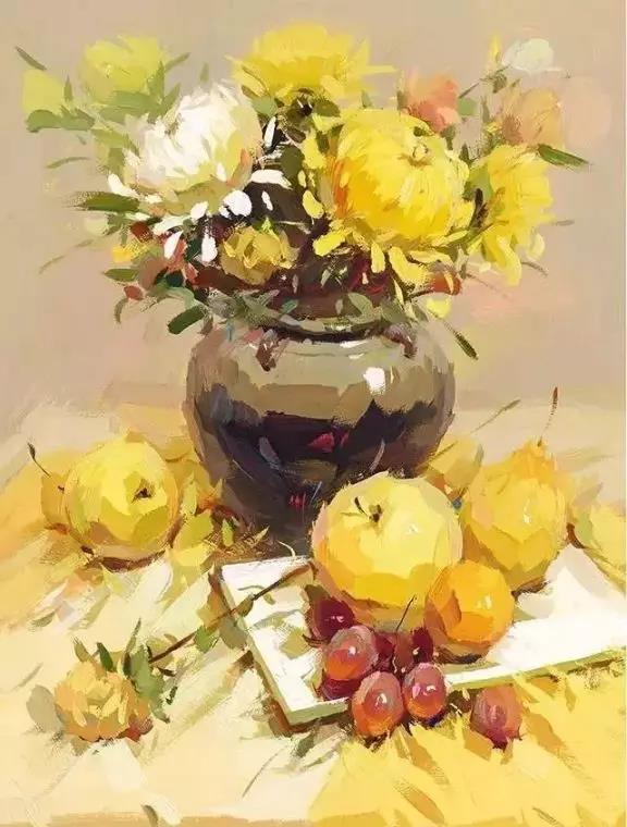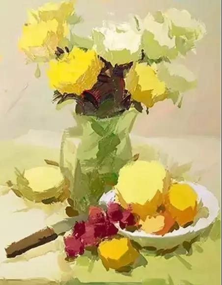 水粉有人會(huì)畫(huà)的很灰,整體沒(méi)有亮的感覺(jué),水粉還是要多用亮色尤其是在水果上,在構(gòu)圖是一定要明確整體的畫(huà)面。