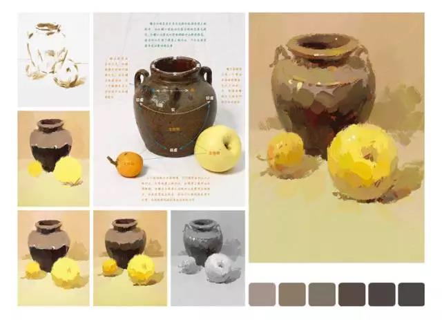 這些都是該組靜物中色彩的總體傾向所構(gòu)成的色調(diào)。我們應(yīng)在寫生中牢牢地把握并記住靜物的色調(diào),并將其貫穿于寫生的始終。