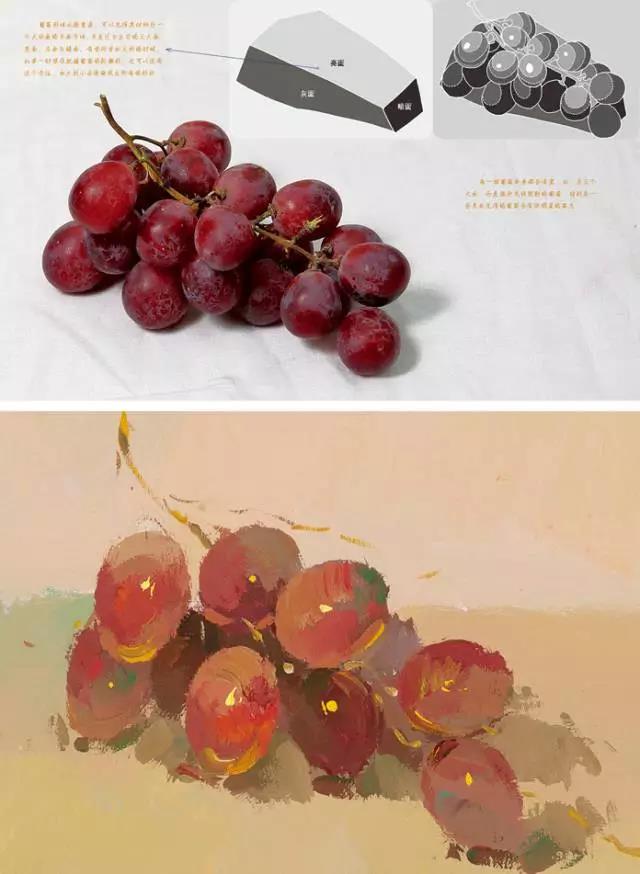 例如:我們首先可以觀察一下,在襯布與物體中,哪種色彩占的比例大,襯布的色彩傾向與主要靜物的色彩是協(xié)調(diào)還是對比的關(guān)系。