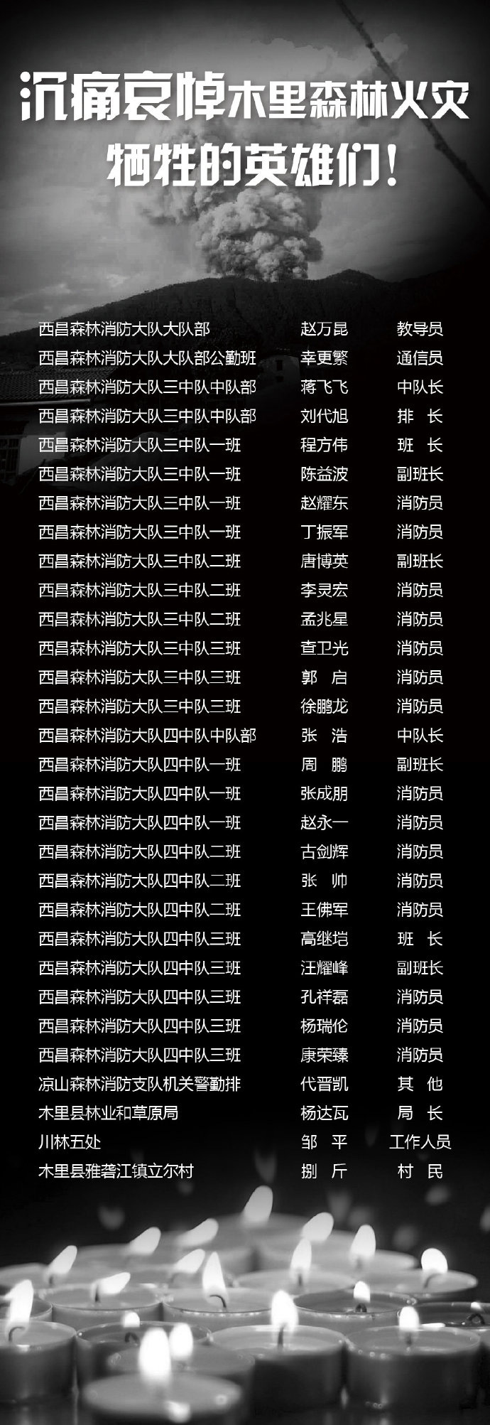 27名森林消防隊員和3名地方撲火人員犧牲。