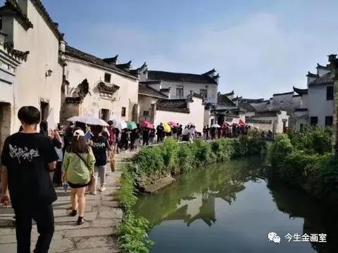 徽派式的建筑、朦朧的古宅、水墨色的磚瓦、夢幻般的水鄉(xiāng),都在金粉的畫中呈現(xiàn)的栩栩如生。金粉們的身影,在宏村景區(qū)內(nèi)隨處可見,無論是烈日當空還是大雨滂沱,金粉們都沉浸于畫作,堅守于初心。